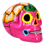 Multicolored ceramic skull hand-painted with an exclusive hibiscus flower design.