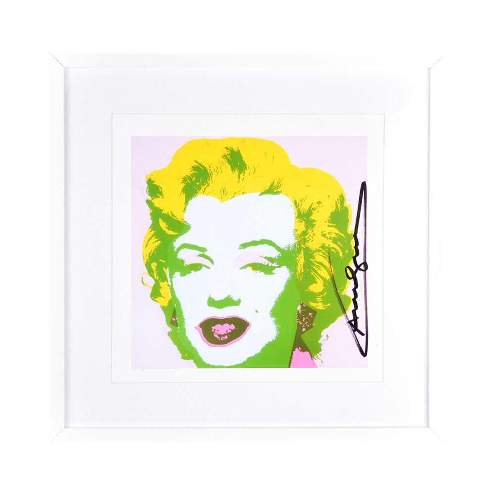 The radical simplification of the features and the use of flat color make the portrait both seductive and distant, emphasizing Warhol's reflection on fame, reproducibility, and the icon as a cultural product. The autograph on the side adds a further element of uniqueness to the image.