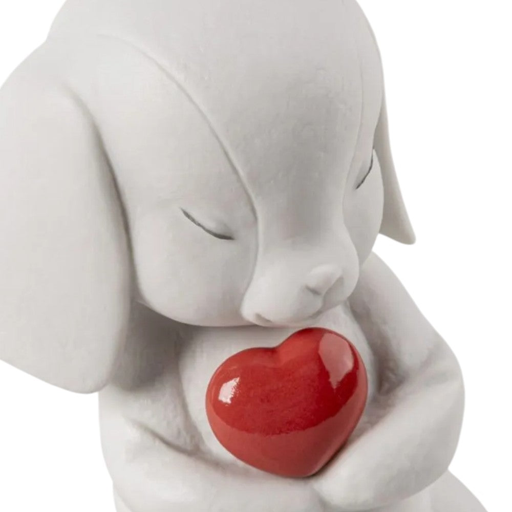 LLADRÓ PORCELAIN SCULPTURE "BUDDY – AFFECTIONATE PUPPY" WITH RED HEART