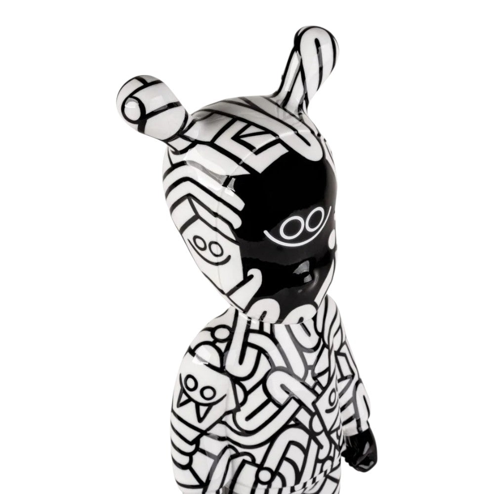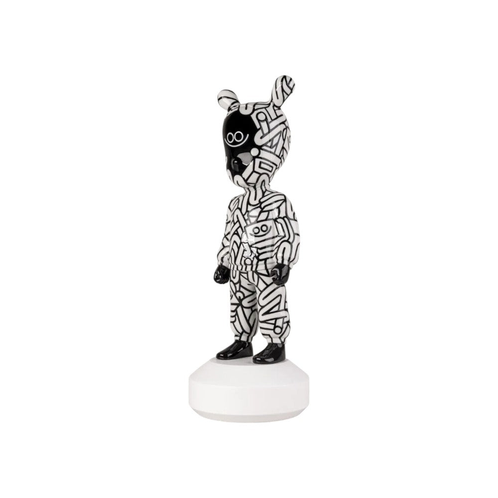Limitata a 300 pezzi, la scultura "The Guest – Big" disegnata da Juan Díaz-Faes presenta una finitura brillante che mette in risalto l'audace motivo grafico in bianco e nero dell'artista. Ogni pezzo è decorato a mano, trasformando l'iconica silhouette di The Guest in un oggetto da collezione unico, dove l'estetica contemporanea incontra la precisione artigianale. Modellata dallo scultore Raul Rubio, questa versione in grande scala esprime tutto il carattere e la personalità del progetto creativo di Díaz-Faes. Solida e scenografica, ha grandi dimensioni — 52x19x19 cm — che la rendono perfetta come elemento centrale in ambienti moderni, spazi espositivi o collezioni private. Lanciato nel 2025, unisce valore artistico e cura dei materiali, ed è accompagnato da garanzia e assicurazione gratuita valida per un anno, che consente la sostituzione senza costi aggiuntivi in ​​caso di rottura.