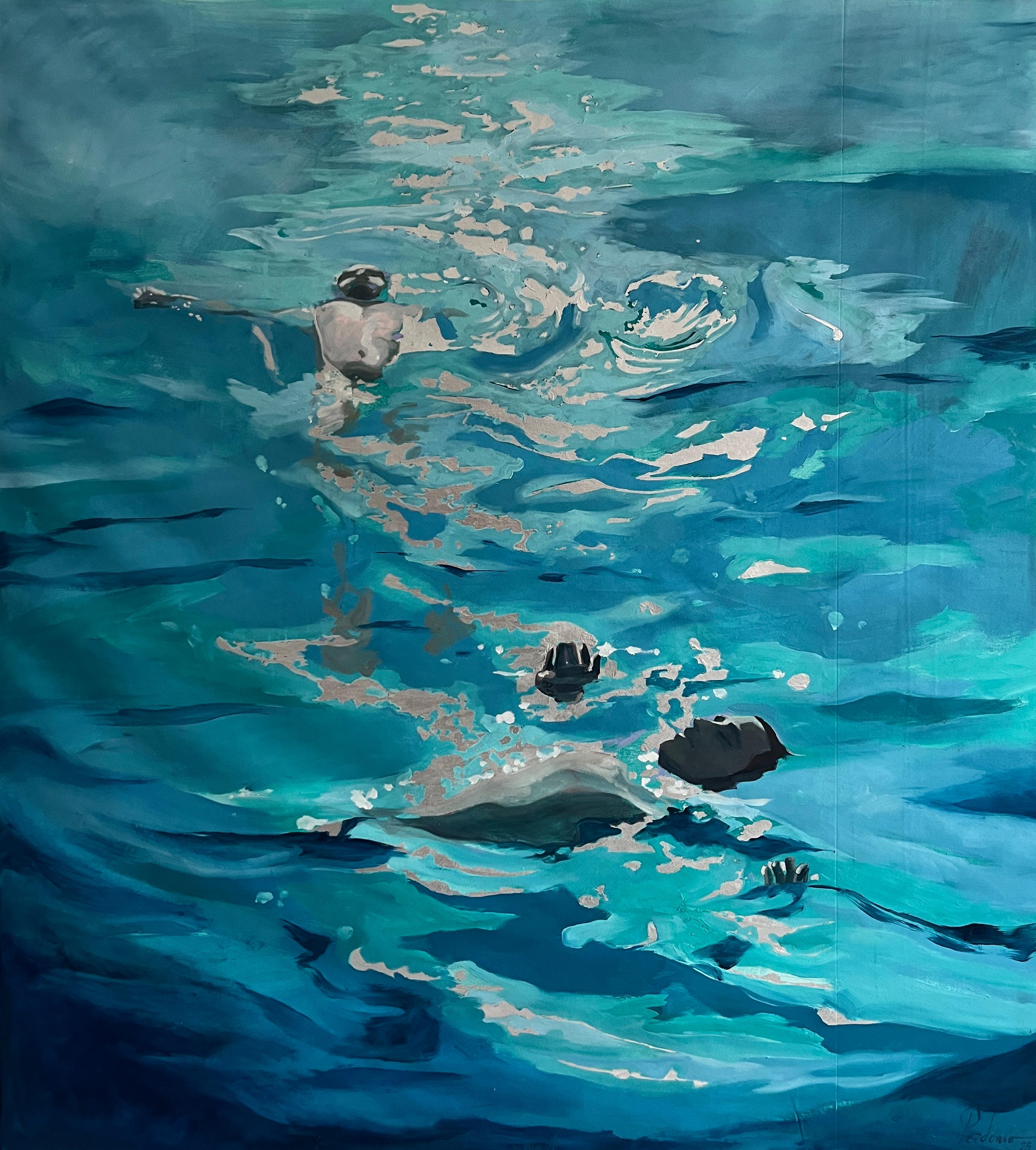 Un cielo che si fa carne, o forse corpi che aspirano alle stelle. In quest'opera, la materia pittorica danza come costellazioni al rallentatore, evocando un antico legame tra l'umano e il cosmico. "Cuerpos celestes" è un titolo doppio: si riferisce sia alle stelle sia ai nostri corpi, guidati da energie invisibili.