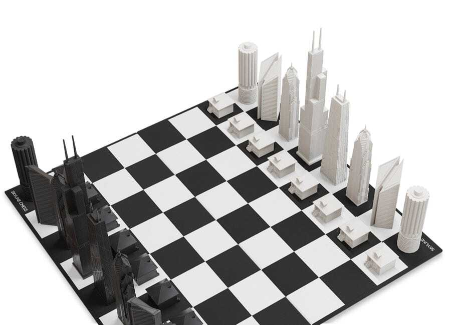 Set di scacchi Skyline Chess "The Chicago City Edition" con scacchiera in cartone