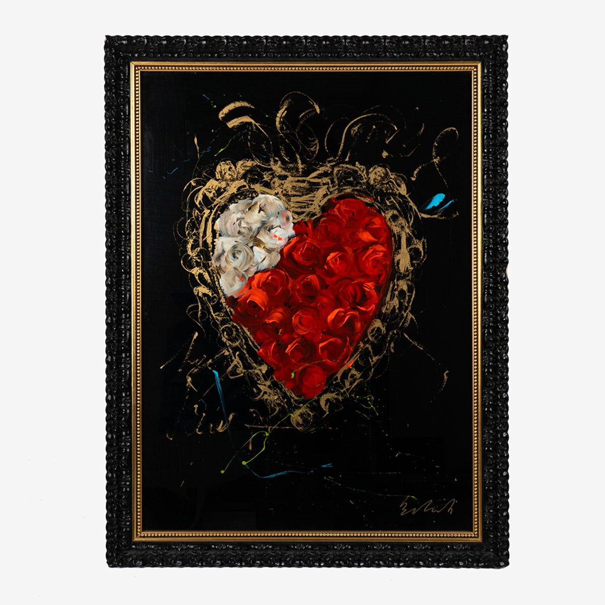Bellandi places the heart at the center of the work, restoring it to its role as protagonist. The compact flowers fill it and amplify its emotionality, conveying an intimate message. It is as if the artist were opening a window onto his inner universe, revealing both his most fragile and most vibrant sides.